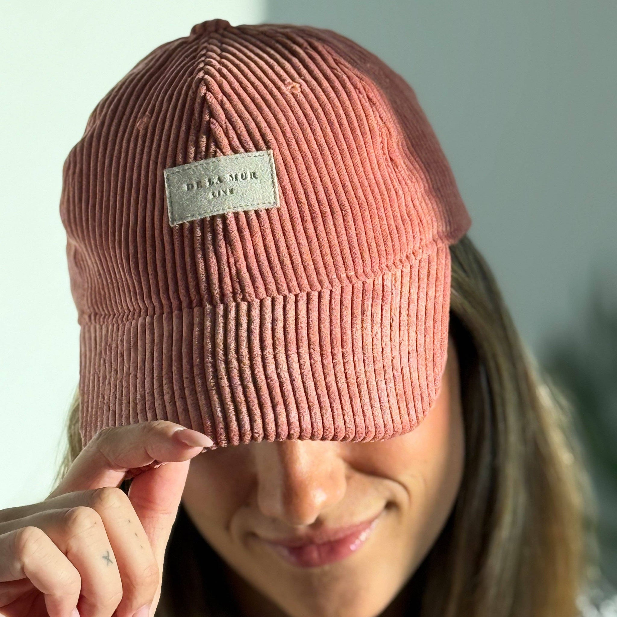 Weiches Cap aus Baumwollcord in hübschem Coral. Stilvolles und nachhaltiges Accessoire für deinen Alltag.
