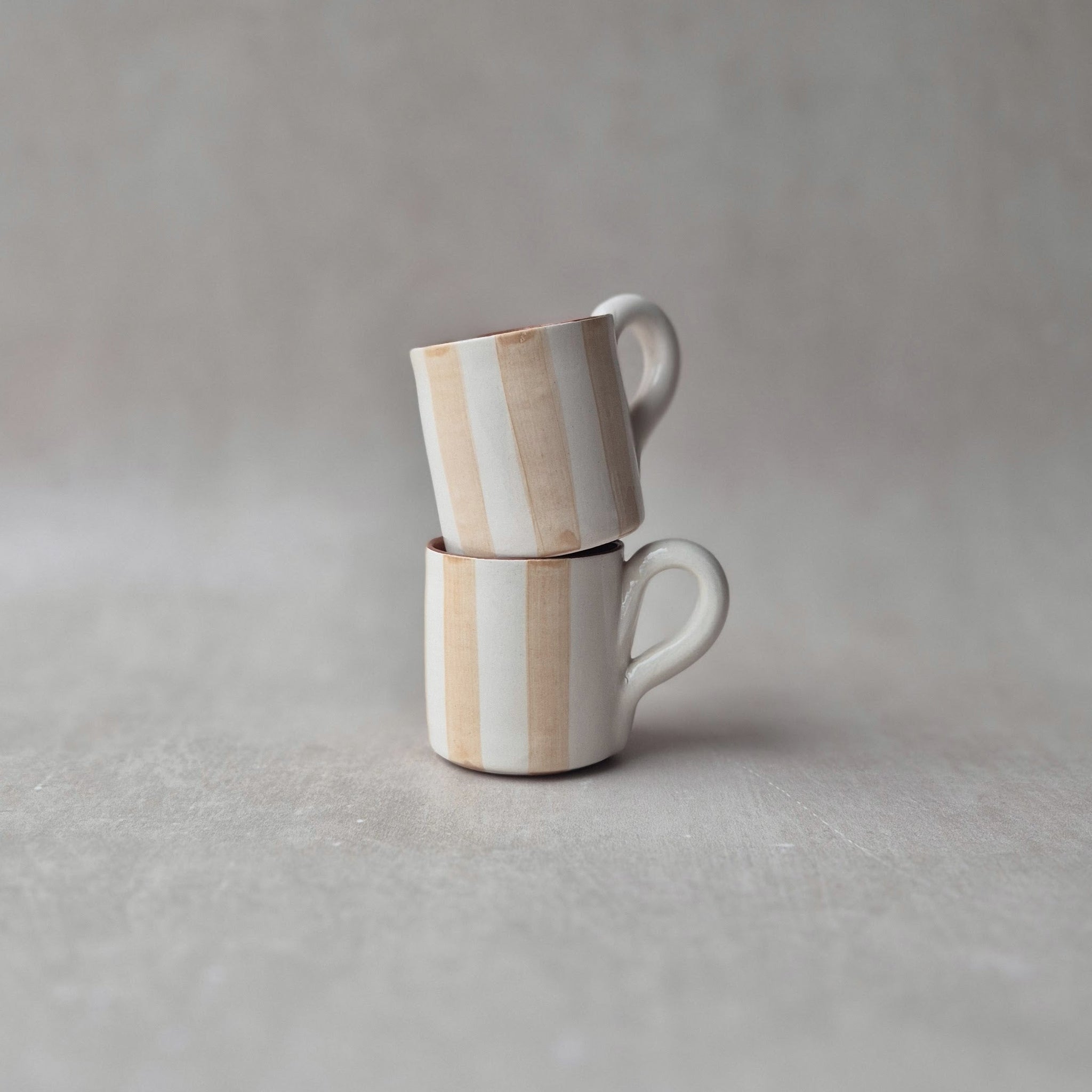 Espressotasse aus Keramik, handgefertigt und handbemalt in Portugal, Farbe: gestreift beige