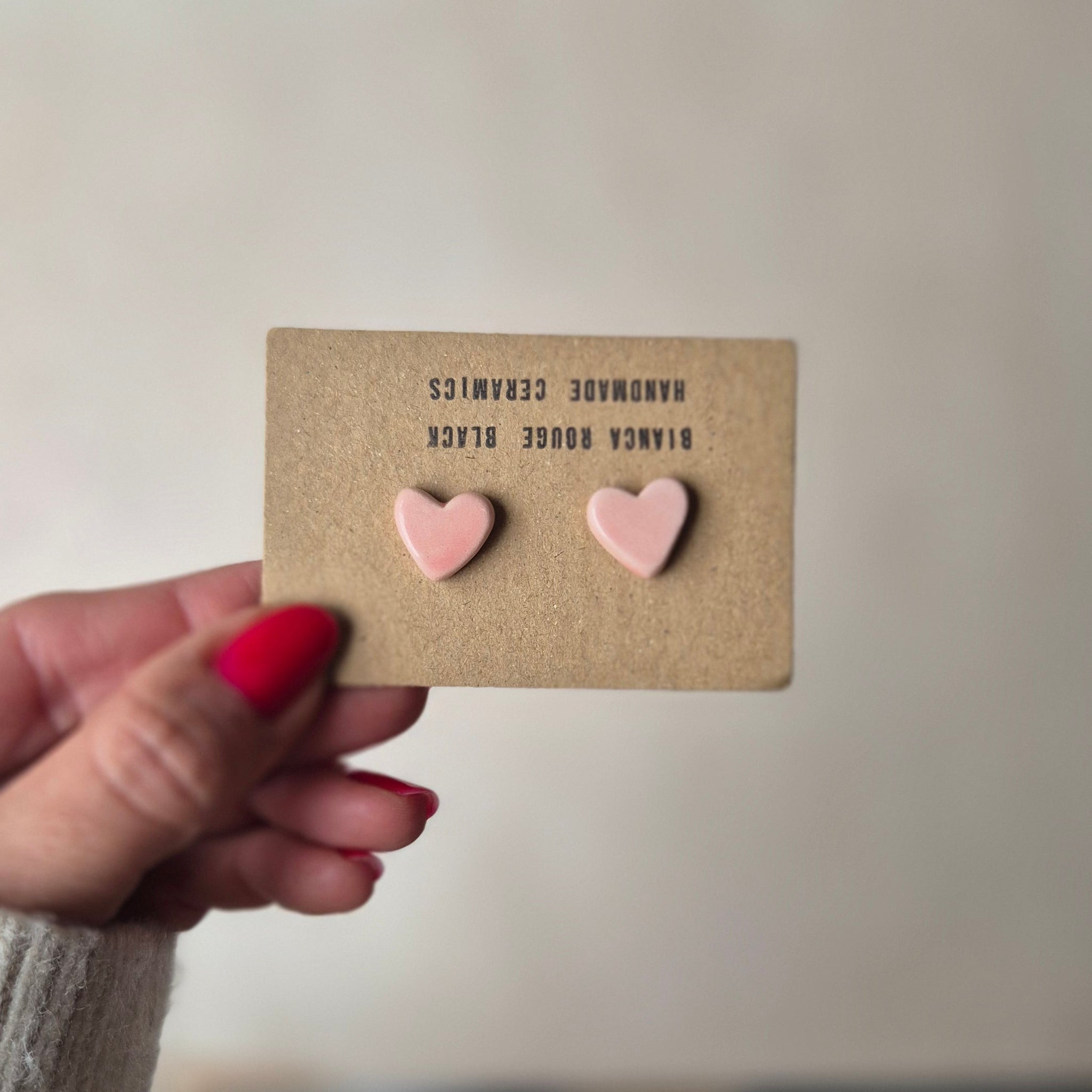 Extraleichte, minikleine handgemachte Ohrringe aus Keramik, Stecker aus Edelstahl, handmade in Portugal, Farbe: blush