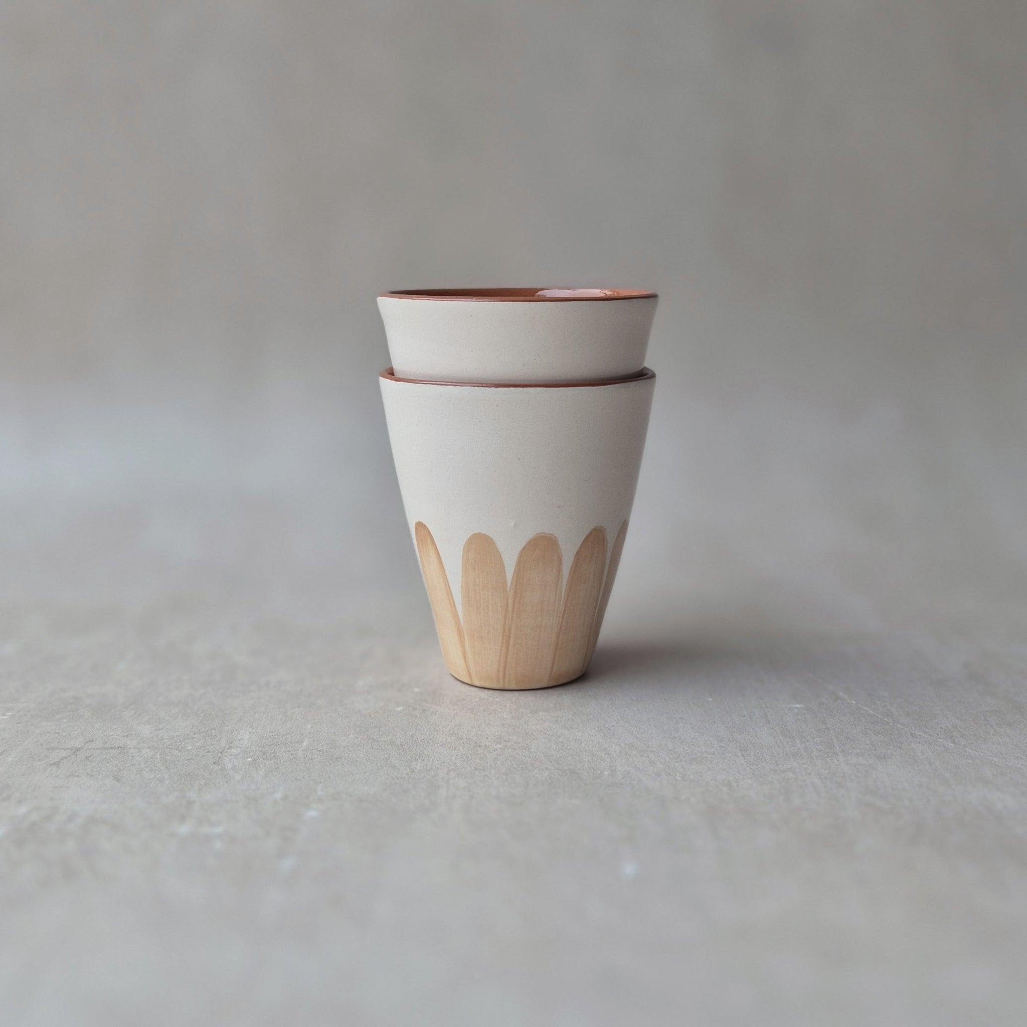 Kaffeebecher aus Keramik, handgefertigt und handbemalt in Portugal, Farbe: gestreift beige