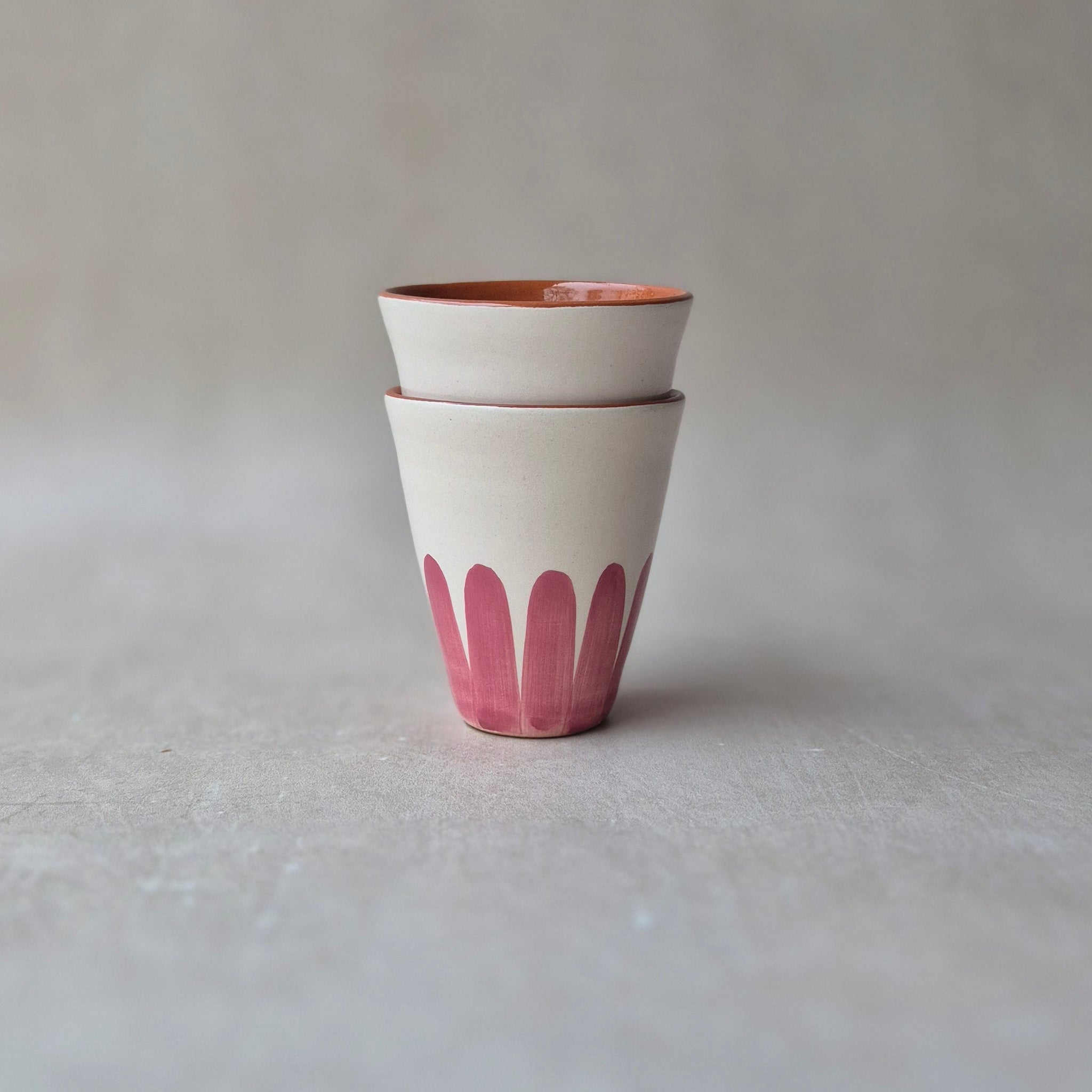 Kaffeebecher aus Keramik, handgefertigt und handbemalt in Portugal, Farbe: Säulen rosa