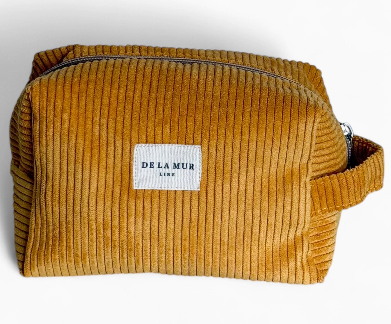 Stilvolles, praktisches und nachhaltiges Necessaire mit Reissverschluss oben und seitlichem Griff für einfachen Transport.