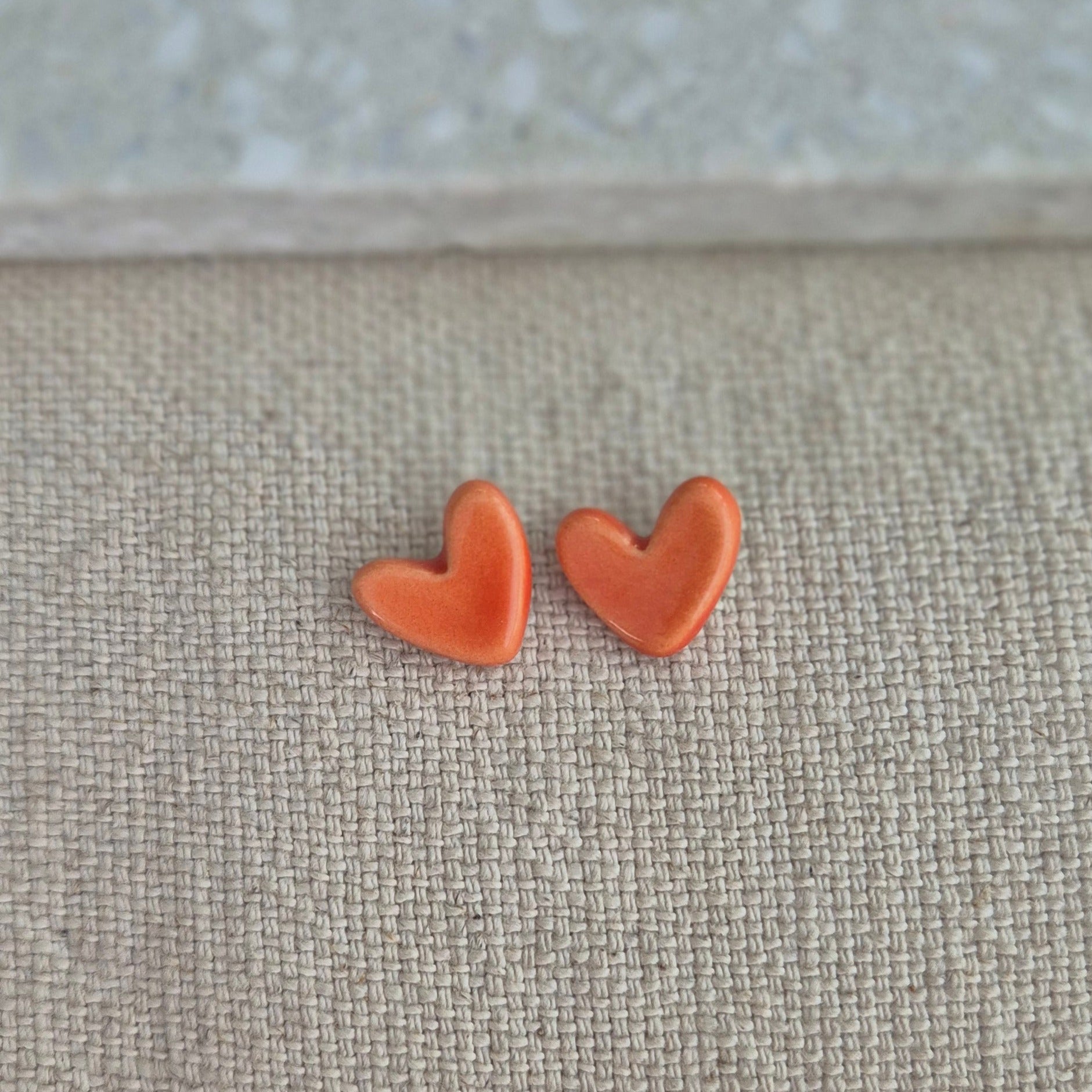 Extraleichte, minikleine handgemachte Ohrringe aus Keramik, Stecker aus Edelstahl, handmade in Portugal, Farbe: orange