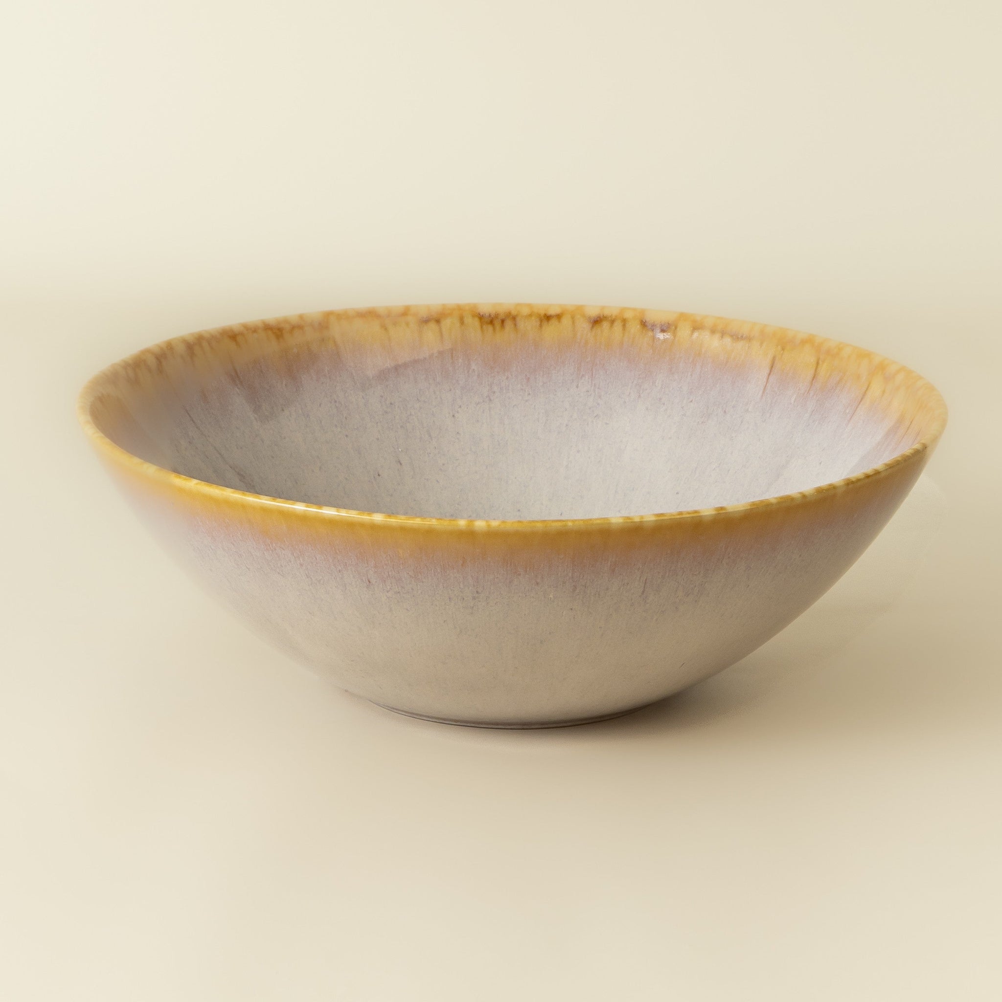 Grosse Salatschüssel aus hellem Steingut mit reaktiver, glänzender Glasur, handgefertigt in Portugal, Farbe: creme