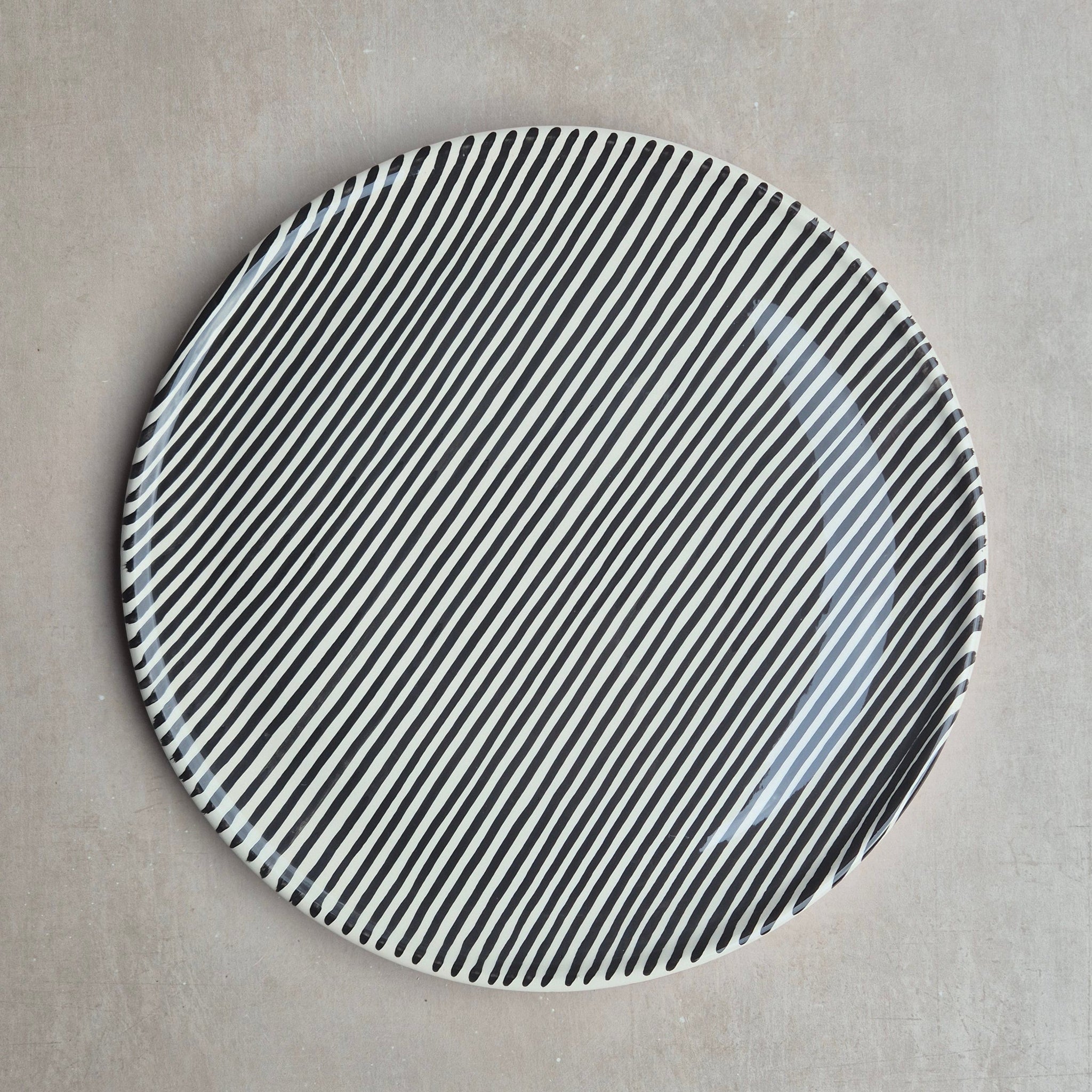 Grosser Servierteller aus Keramik, handgefertigt und handbemalt in Portugal, Farbe: schwarz weiss