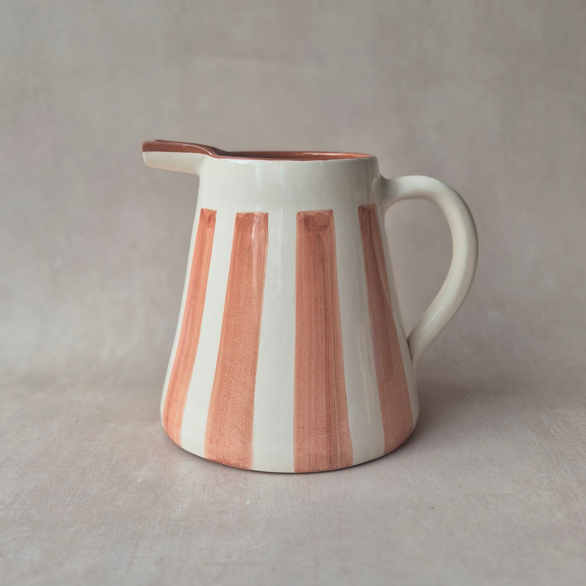 Grosser Krug aus Keramik, handgefertigt und handbemalt in Portugal, Farbe: breit gestreift terracotta