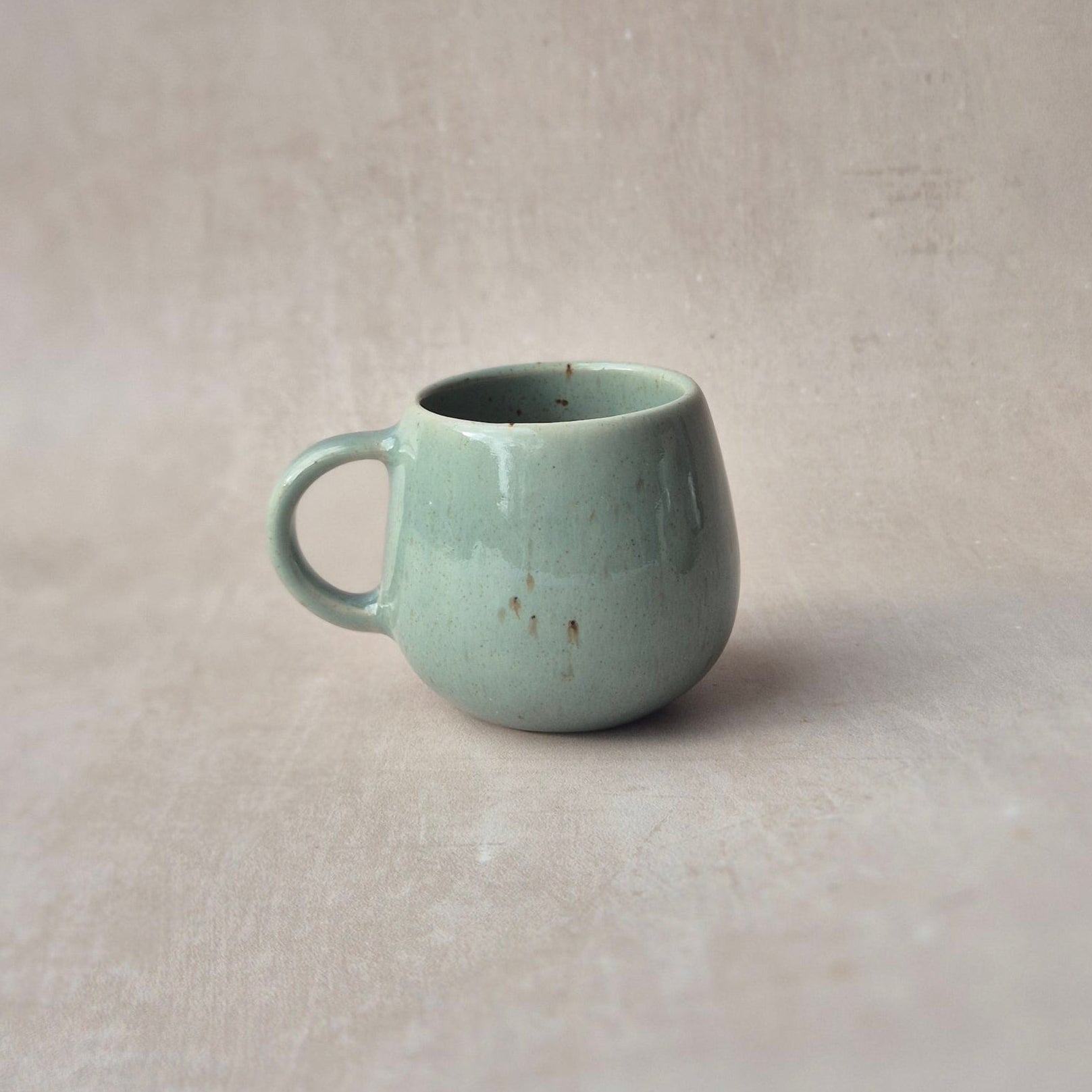 Runde Espressotasse aus Steingut mit glänzender Glasur, handgefertigt in Portugal, Farbe: sage gesprenkelt