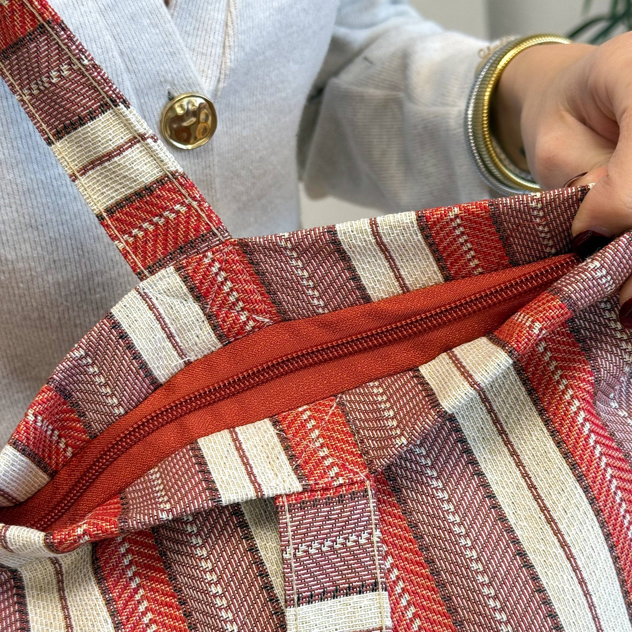 Stilvolle, praktische und nachhaltige Tasche mit Henkeln und Reissverschluss.