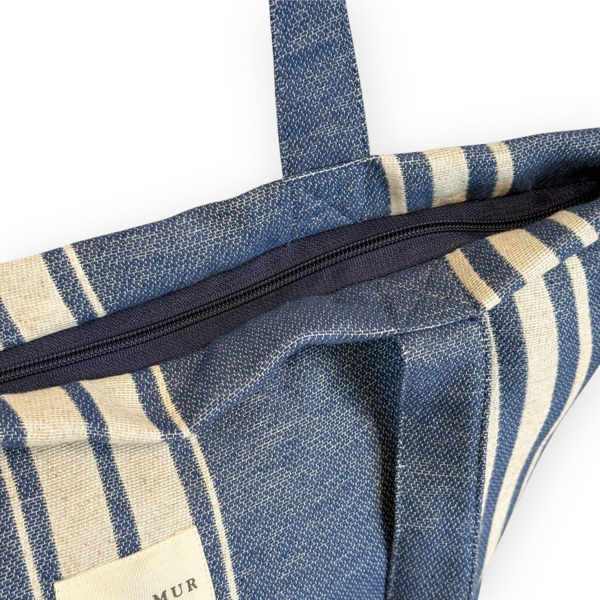 • Lade das Bild in den Galerie-Viewer, Grosse Tasche aus Jacquardstoff stripes marineblau
