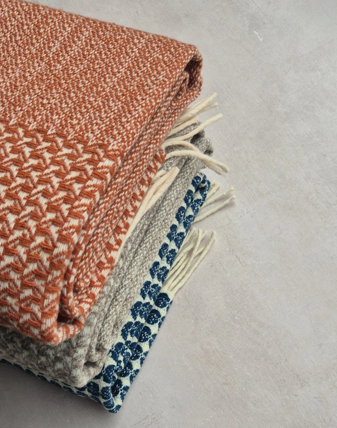 Jede Decke ist ein Unikat – leichte Farb- und Strukturvariationen erzählen die Geschichte ihres handwerklichen Ursprungs.