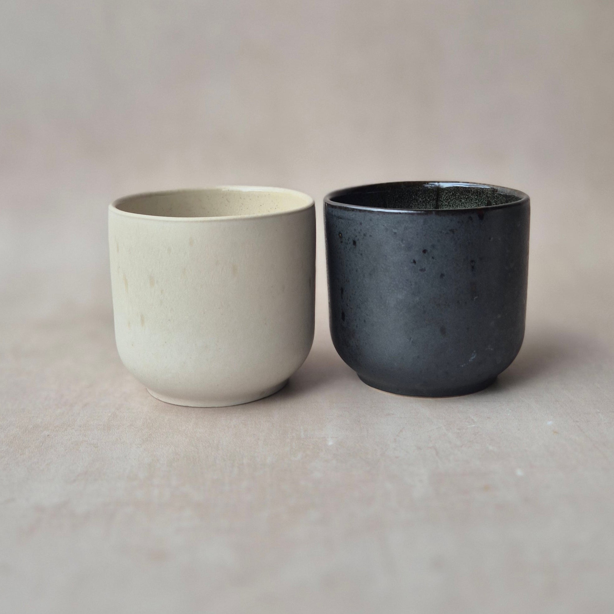 Handgemachter grosser Kaffeebecher aus Steingut, handgefertigt in Portugal, aussen matt, innen glänzend glasiert, Farbe: schwarz