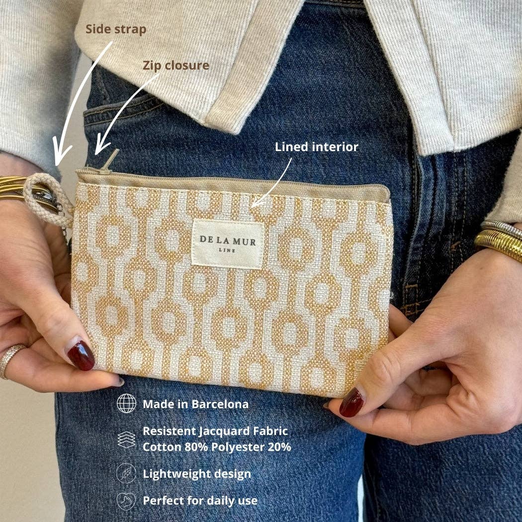 Stilvolles, praktisches und nachhaltiges Mini-Necessaire mit Reissverschluss oben und kleinem Griff an der Seite.
