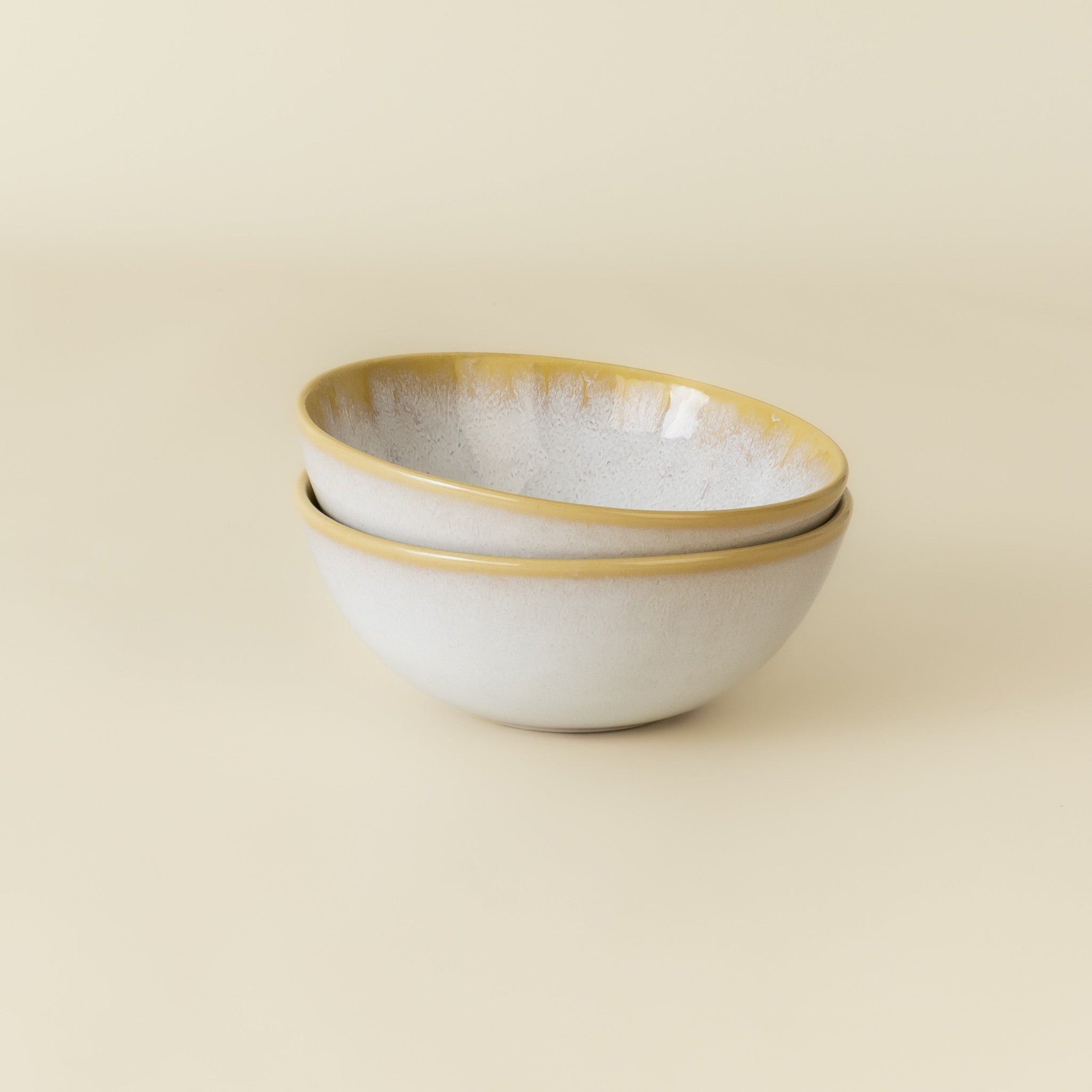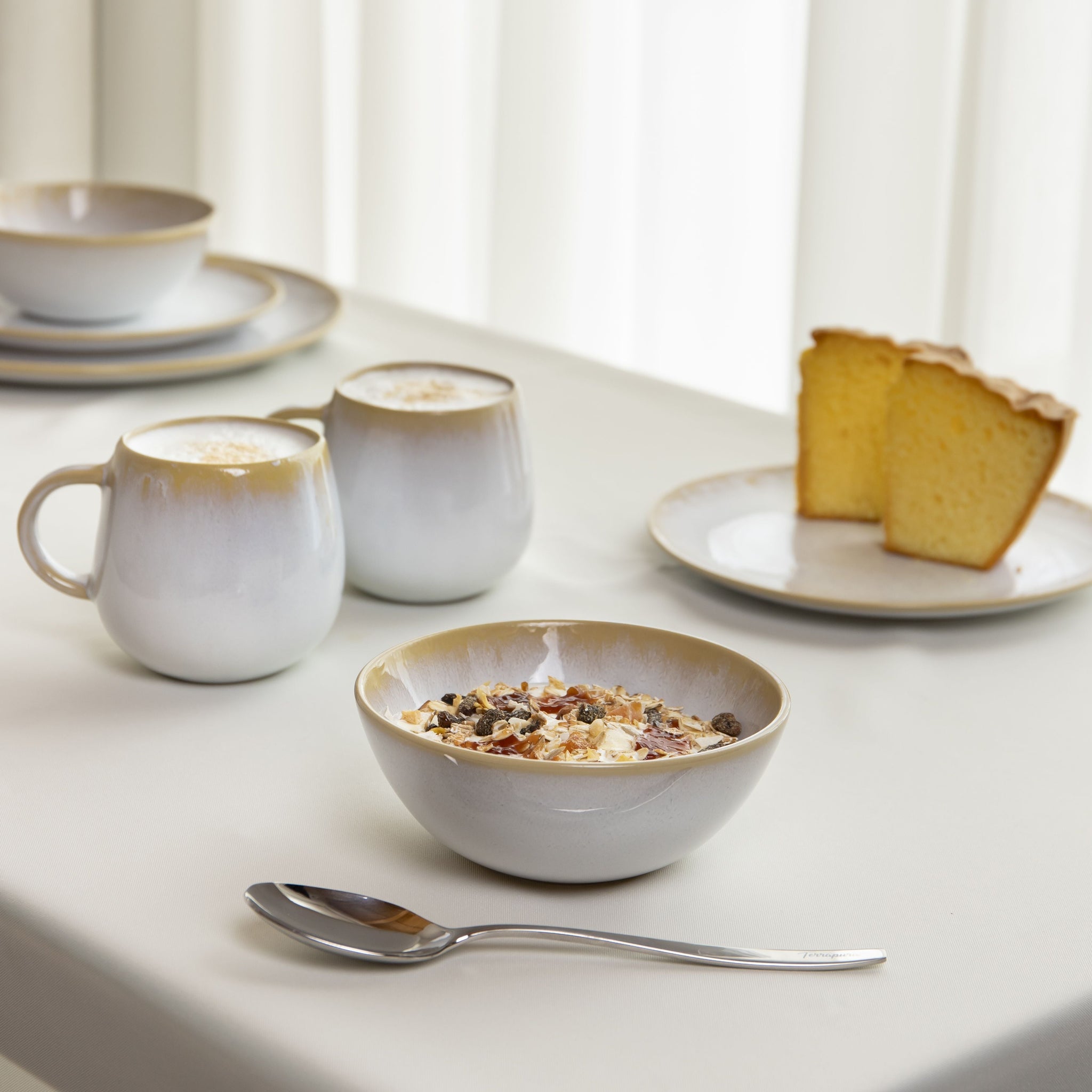 Müslischüssel aus hellem Steingut mit reaktiver, glänzender Glasur, handgefertigt in Portugal, Farbe: weiss
