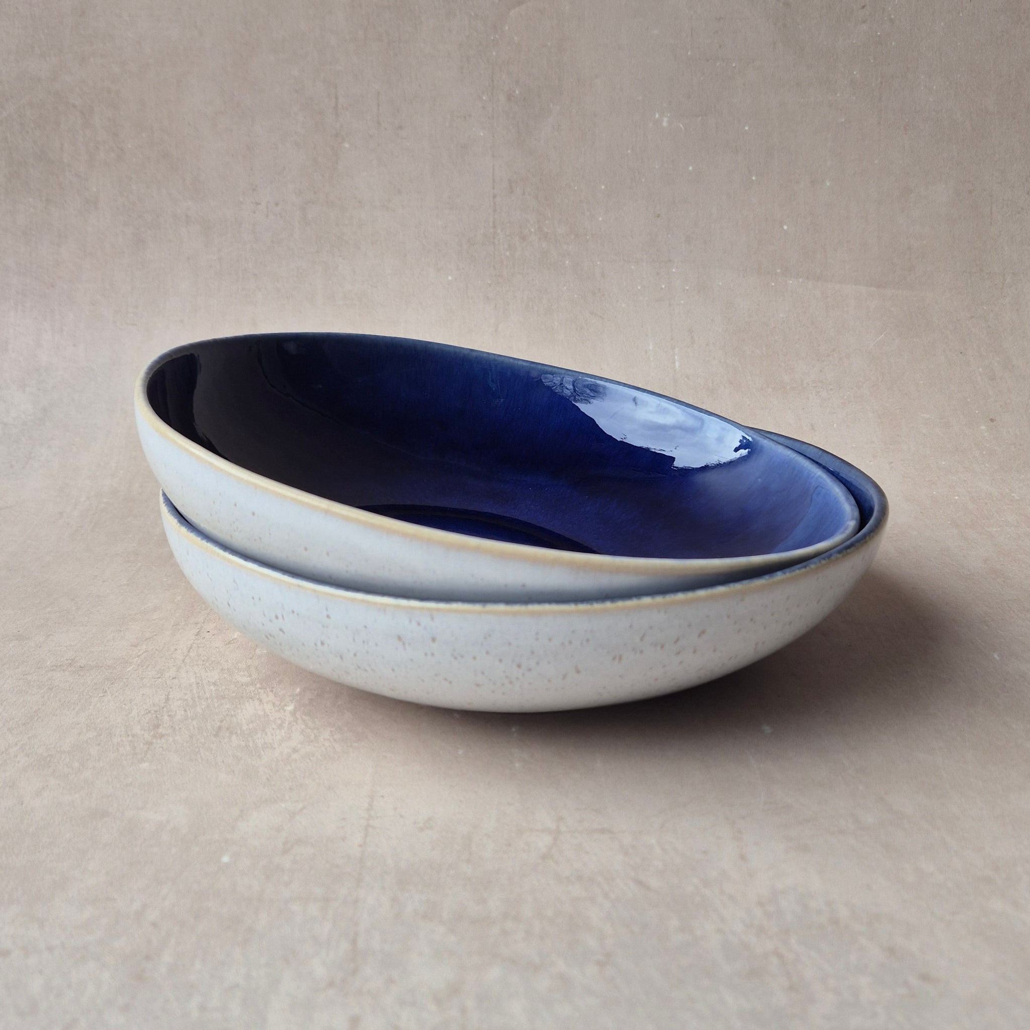 Pastateller aus Steingut, glänzend glasiert, handgemacht in Portugal, Farbe: dunkelblau
