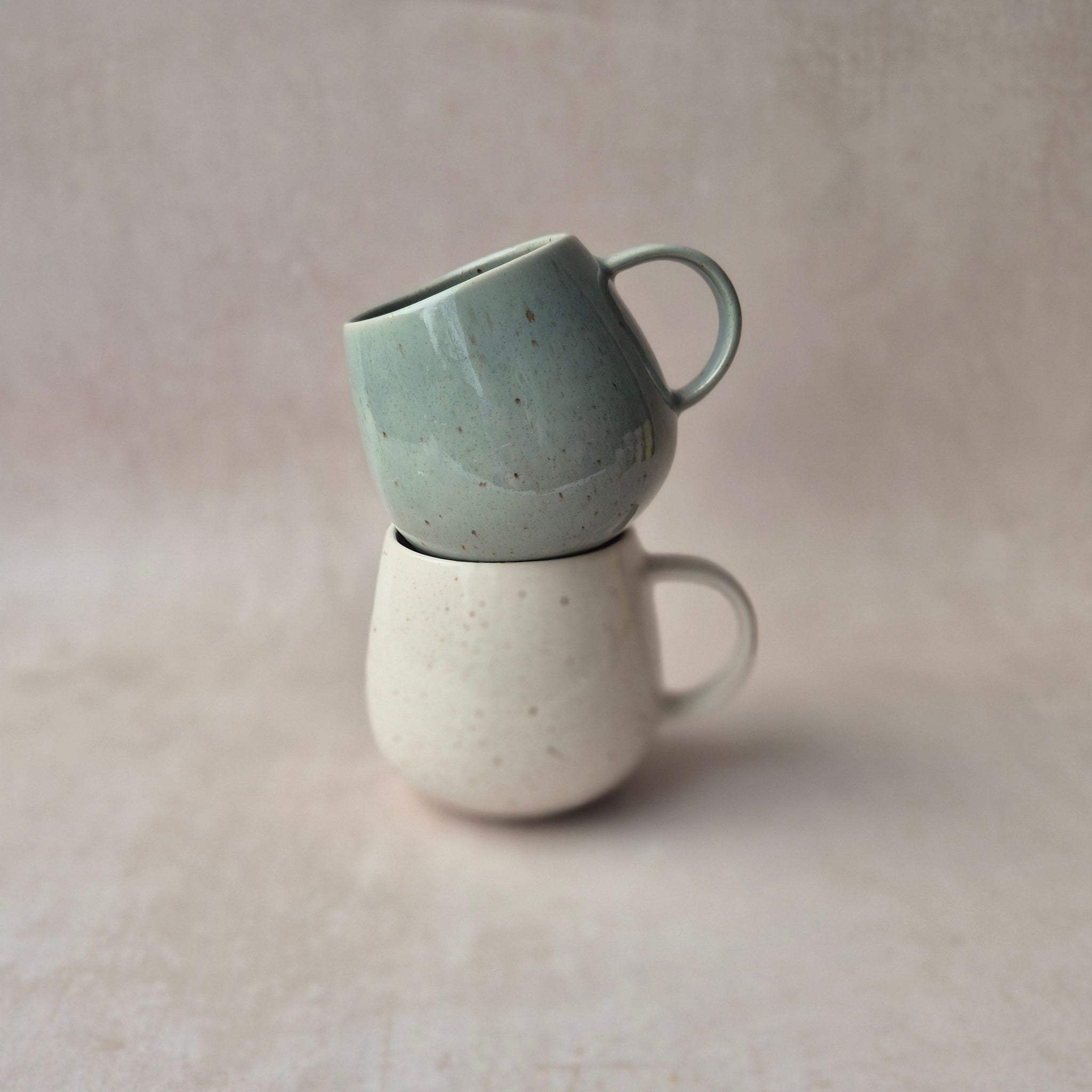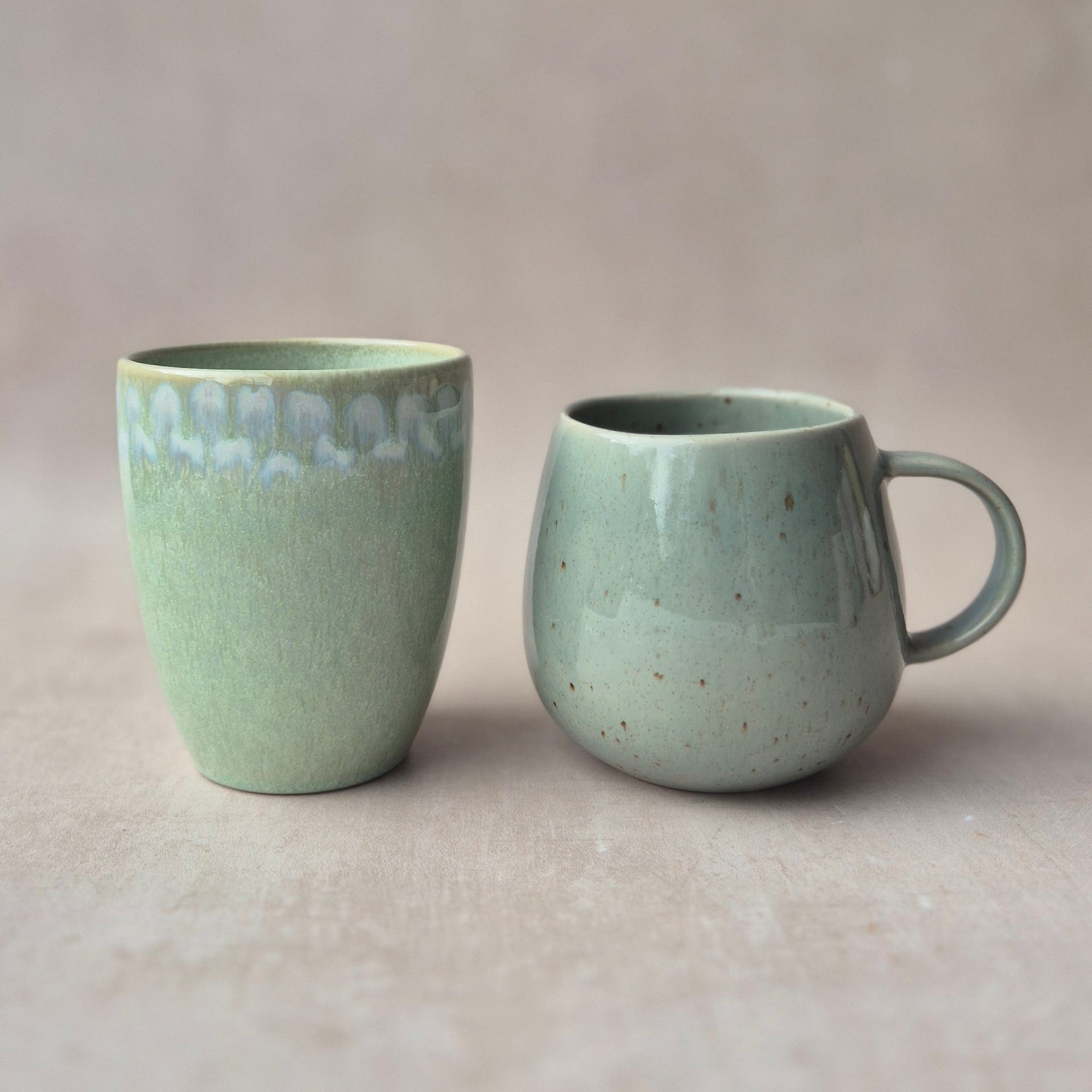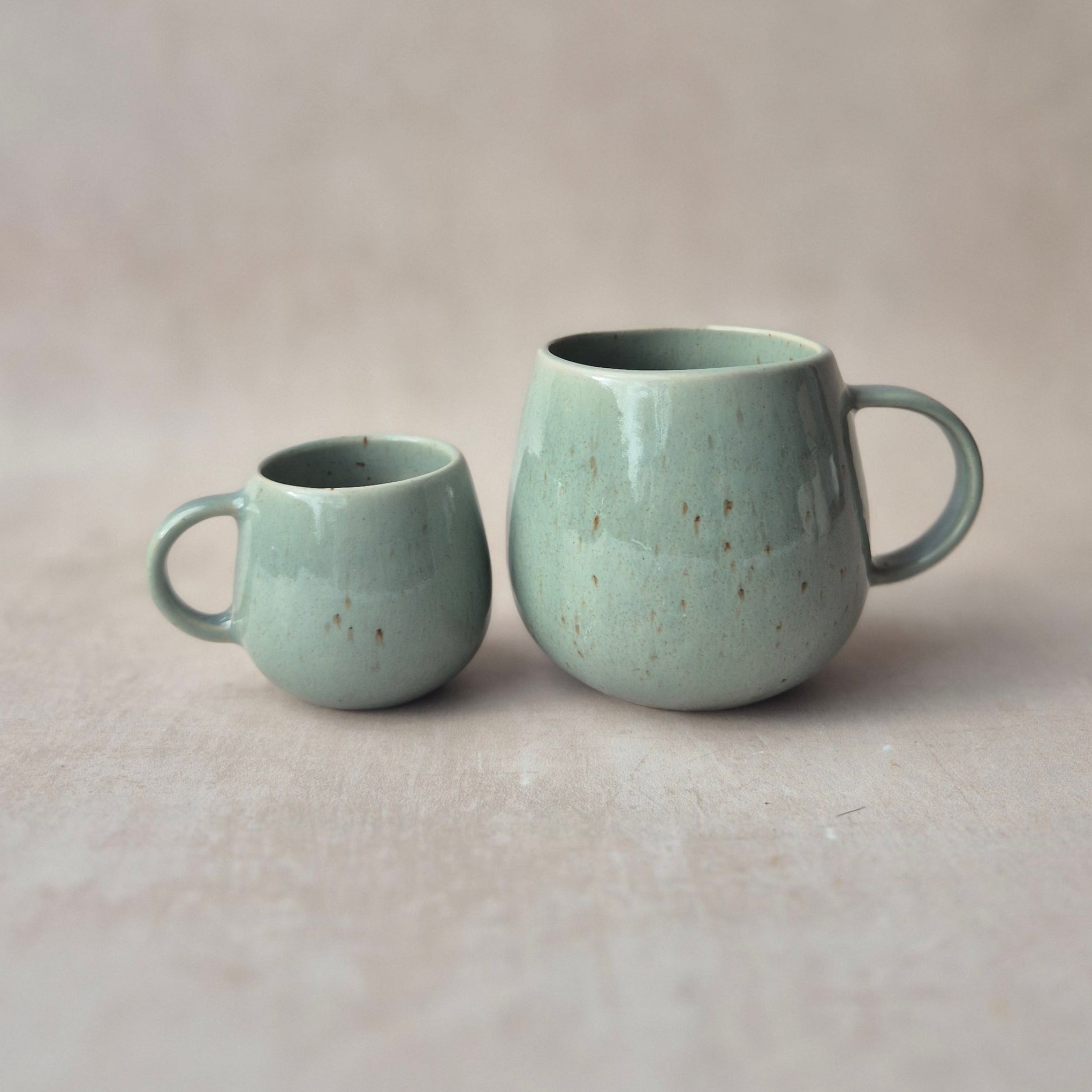 Grosse Tasse aus Steingut, glänzend glasiert, braun gesprenkelt, handgefertigt in Portugal, Farbe: sage, braun