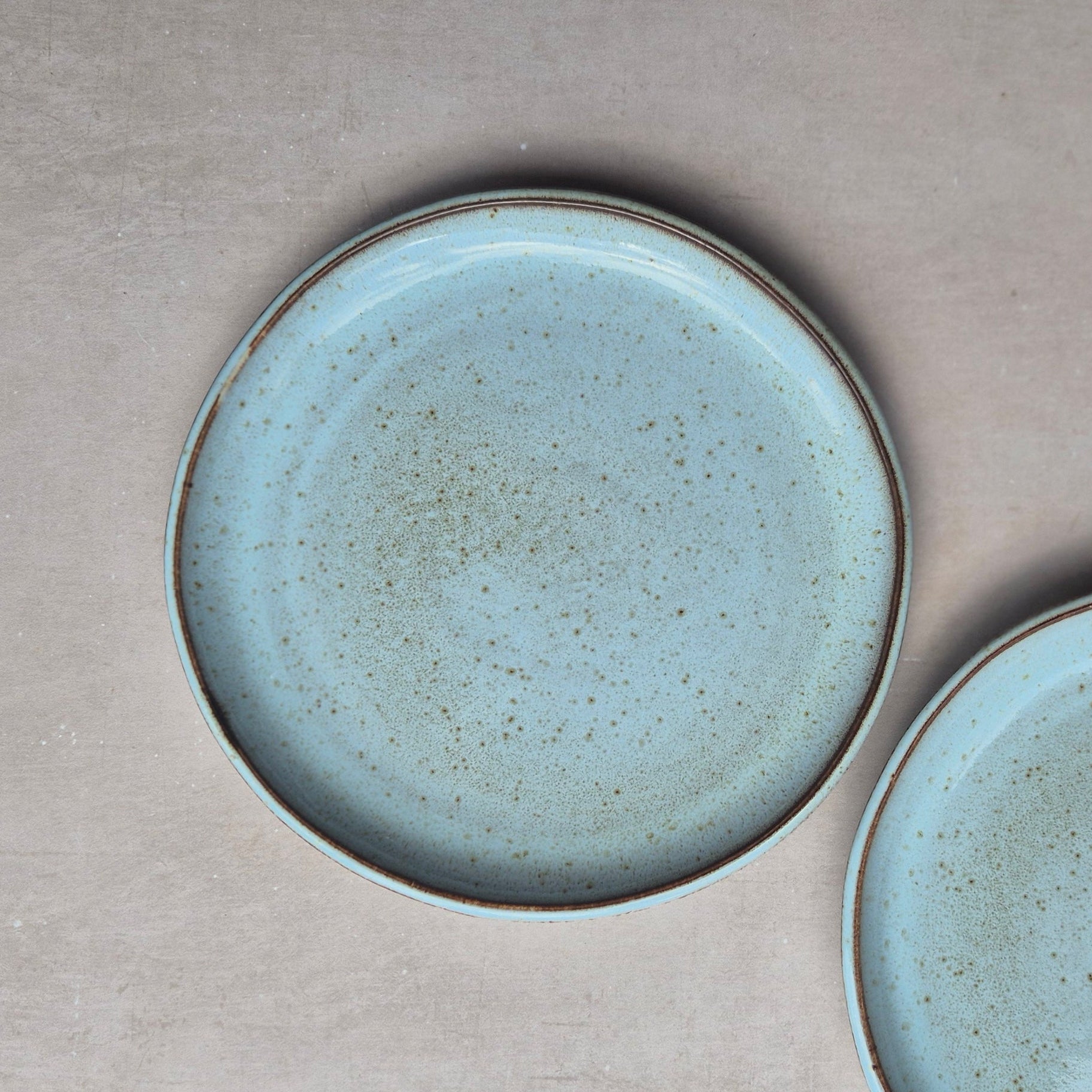 Grosser Teller aus glänzend glasiertem Steingut, handgefertigt in Portugal, Farbe: mint, braun gesprenkelt