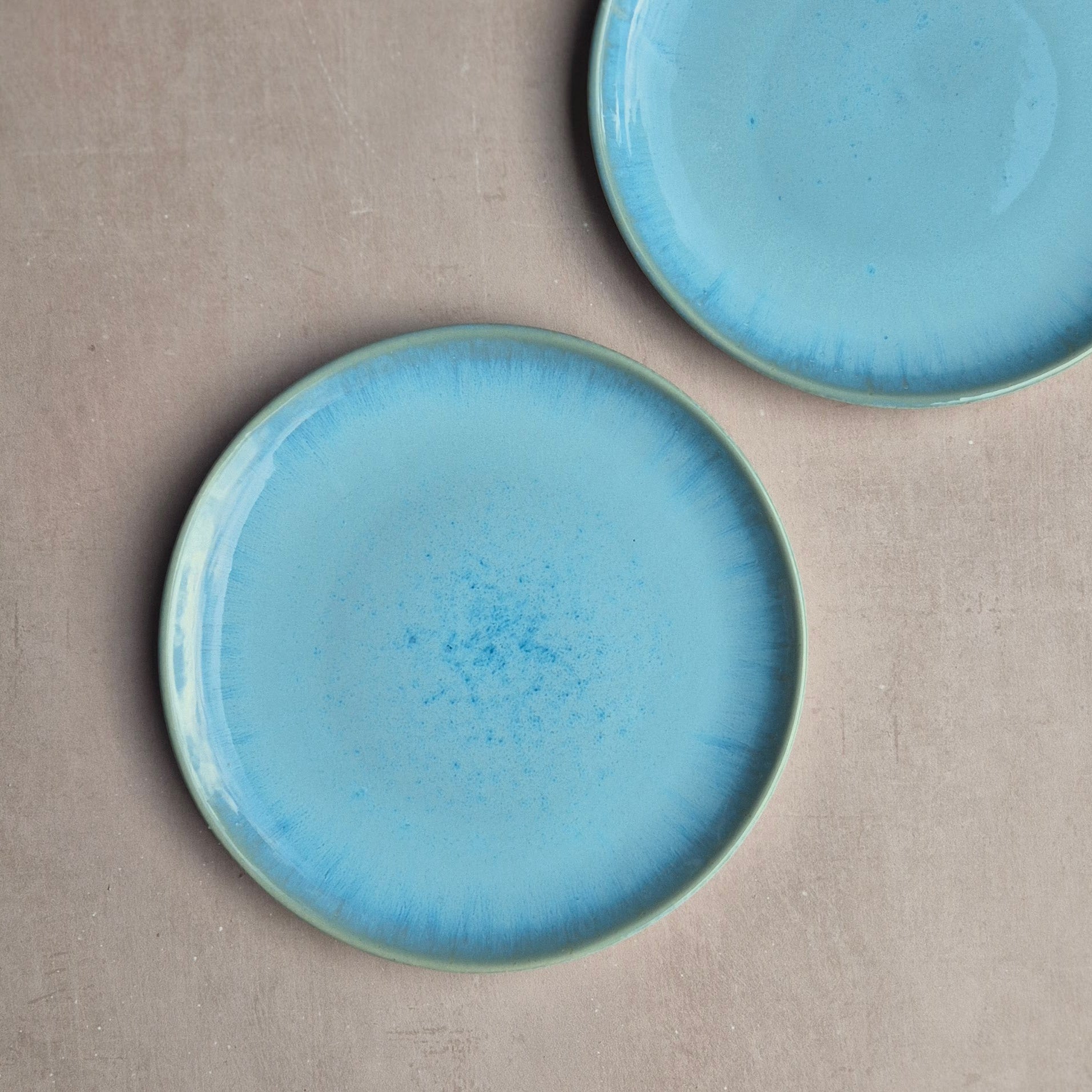 Dessertteller aus Steingut, glänzend reaktiv glasiert, handgemacht in Portugal, Farbe: türkis