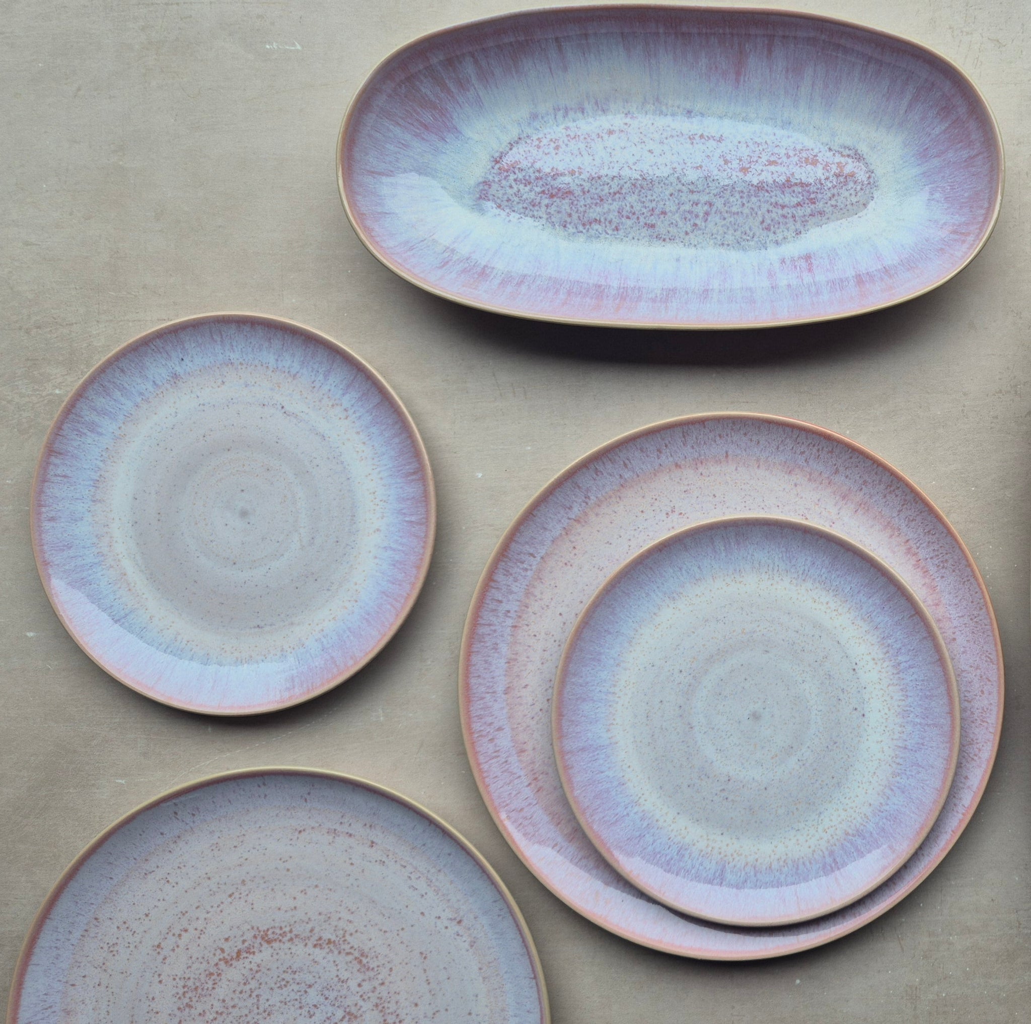 Jeder Teller ist ein Unikat: leichte Farb- und Oberflächenvariationen zeugen von sorgfältiger Handarbeit und verleihen dem Tisch eine natürliche Eleganz.