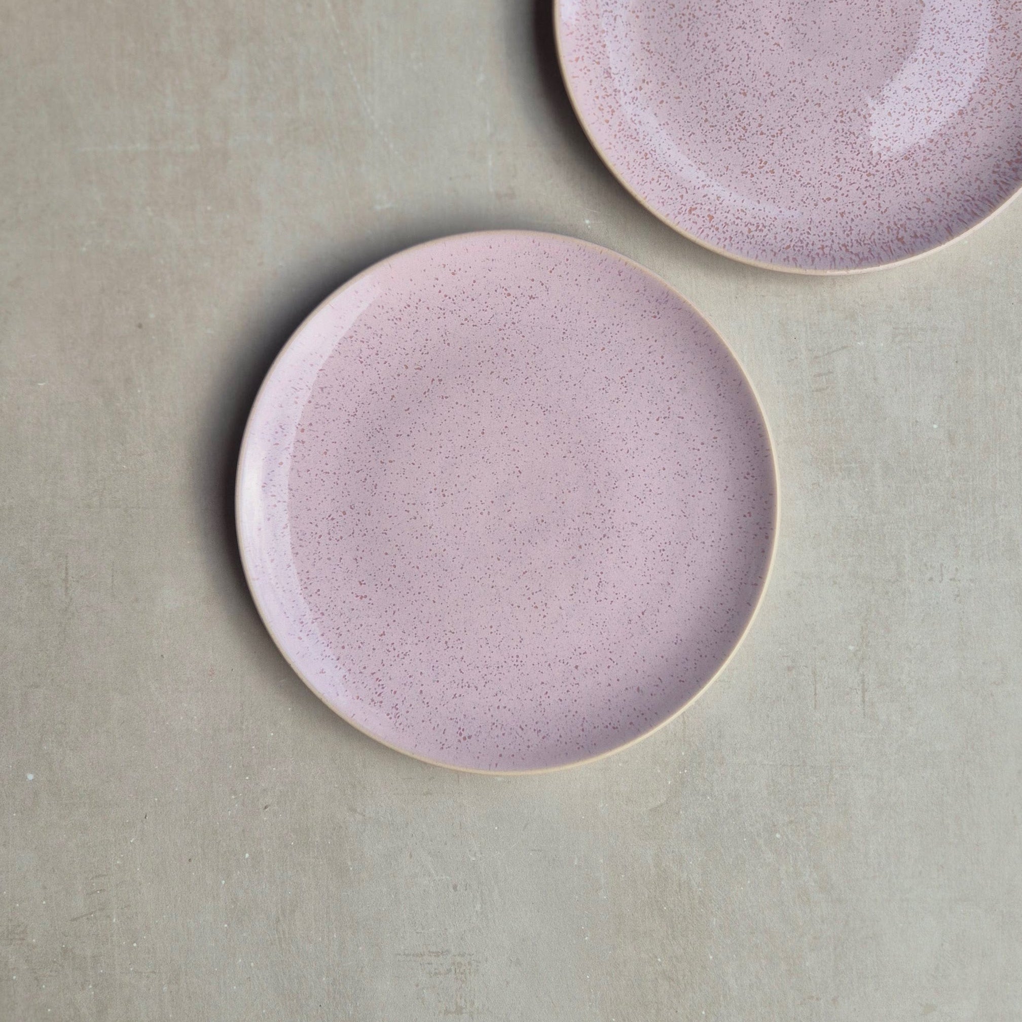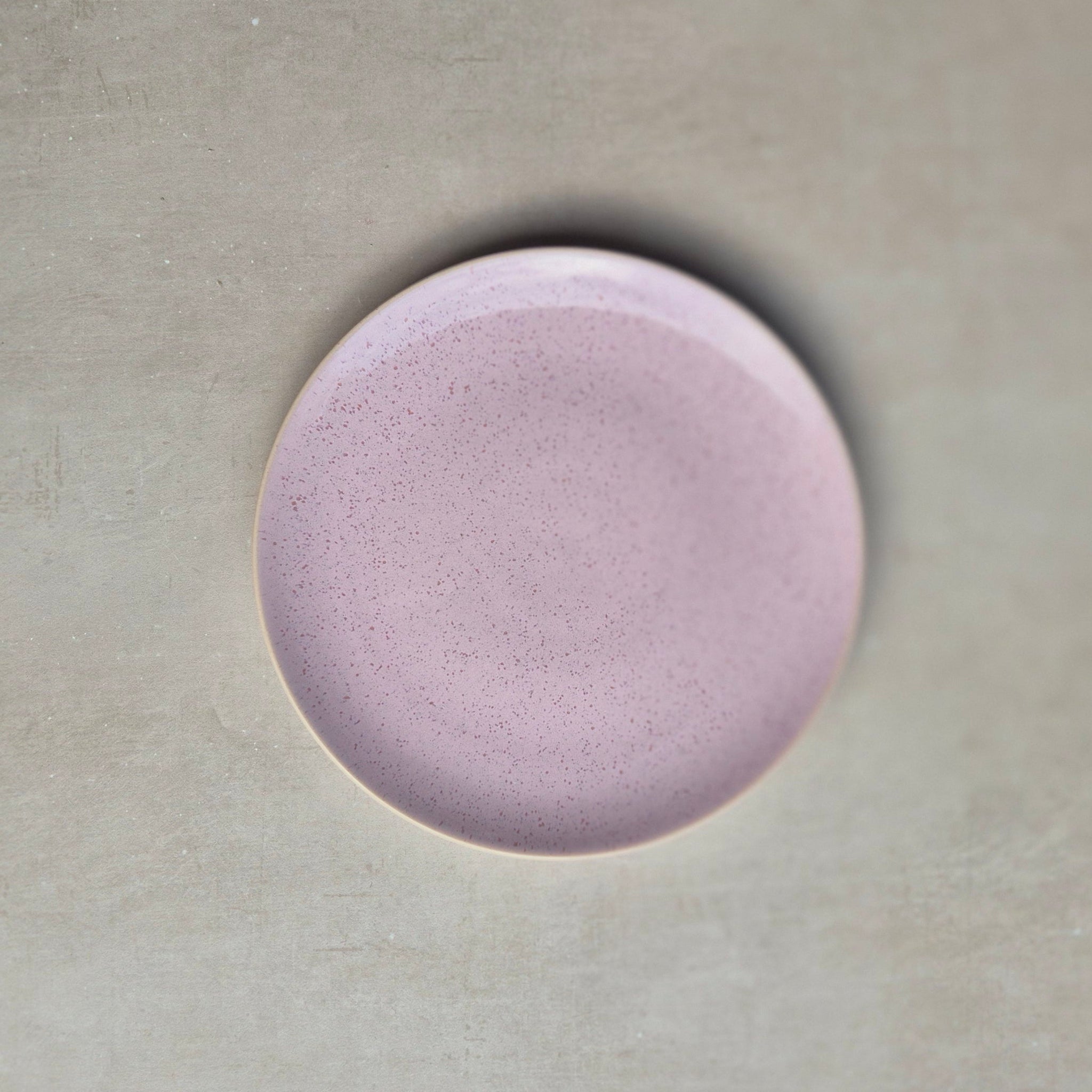 Dessertteller aus glänzend glasiertem Steingut, handgefertigt in Portugal, Farbe: rosa gesprenkelt